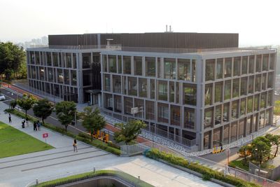 The campus spans multiple buildings with modern architecture, including an underground campus complex connecting educational facilities through a central walkway.