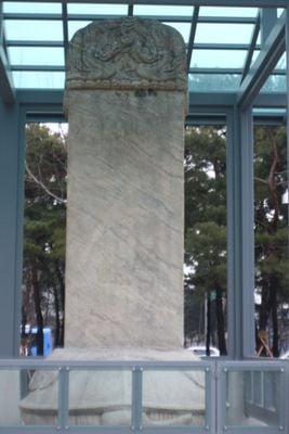 The stele was erected in 1639 following the surrender of Joseon Korea to the Qing dynasty, marking the location where King Injo formally submitted to the Qing Emperor.