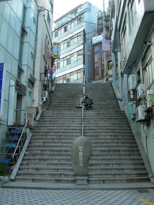 The 40-step stairway spans twenty-five meters in length and contains exactly forty stone steps connecting the port area to residential neighborhoods in Busan.