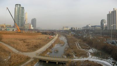 The park extends along a 6-kilometer trail connecting 63 Square to the National Assembly building, featuring reed colonies and native Korean plants.