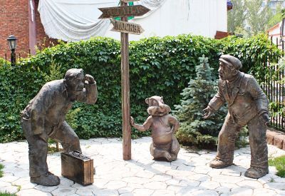 Where where? In Karaganda!, Monument to a city expression in Karaganda, Kazakhstan.