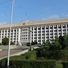 The City Hall building displays elements of Soviet-era architecture with its rectangular shape, ornate decorative elements, and symmetrical facade design.