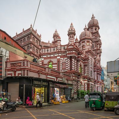 Jami Ul-Alfar Mosque, Red and white striped mosque in Pettah, Colombo, Sri Lanka