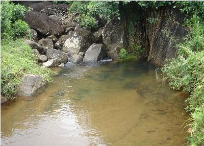 A temple dedicated to Mahasamy, one of the seven Devol deities, stands above the waterfall, marking its religious significance in the hill country.