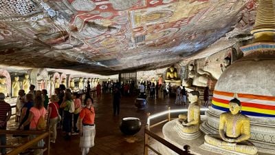 The cave monastery holds 157 statues and extensive ceiling paintings that depict important scenes from Buddha's life and Sri Lankan Buddhist traditions.
