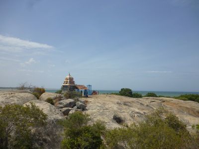The Ukanthamalai Murugan Kovil stands on a rocky elevation, offering views of the surrounding landscape and featuring traditional South Indian architectural elements.