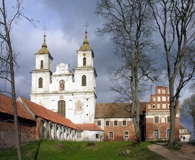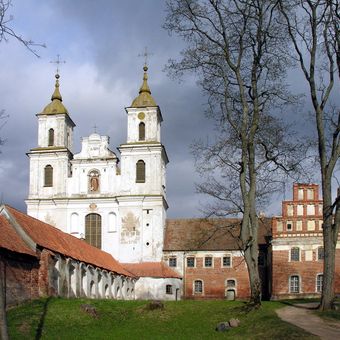Located near the Vilnius-Klaipeda highway, the church maintains regular worship services and welcomes visitors who can explore both the main sanctuary and monastery grounds.