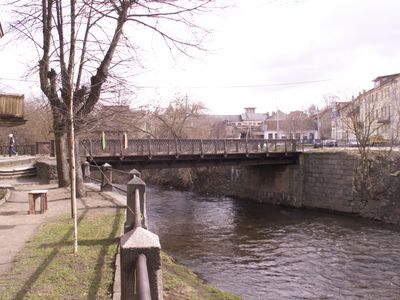 Engineer Feliks Jasiński designed this metal truss structure in 1882, making it the second oldest metal bridge crossing the Vilnia River in Vilnius.