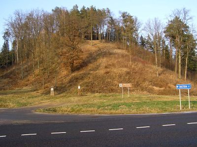The hillfort represents early Lithuanian defensive structures, containing a conical earthworks mound measuring 17 meters long and 3.5 meters high.