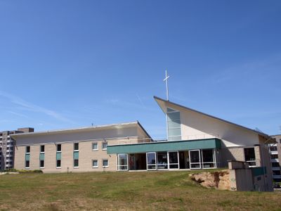 The St. Joseph Chapel stands as a modern religious structure in the residential neighborhood of Pilaitė, featuring contemporary architectural elements and clean lines.