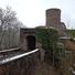 Two engineers currently own the property and have installed scaffolding, indicating potential reconstruction efforts despite the overgrown forest access road.