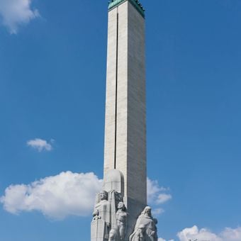 The Freedom Monument rises 42 meters (138 feet) above the center of Riga and is made of granite, travertine, reinforced concrete and copper. Reliefs and sculptures surround the obelisk on several levels, depicting Latvian legends and the era of the independence struggle.