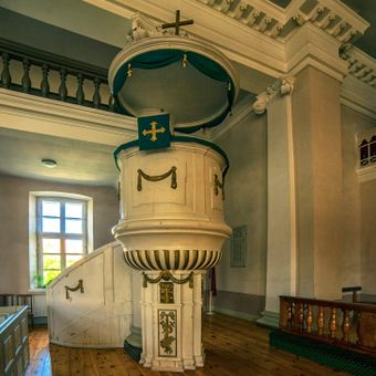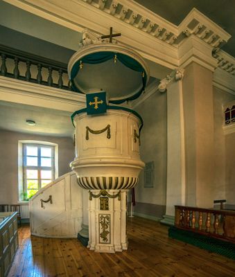 Pulpit of church of Saint Nicholas in Ventspils, Latvian cultural monument No. 4595