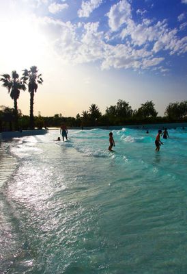 The facility contains Africa's largest wave pool and features 17 different water slides ranging from gentle slopes to steep descents.