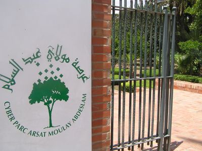 The Arsat Moulay Abdessalam Garden features native Moroccan plants, geometric pathways, traditional water elements, and carefully arranged landscape designs throughout its grounds.