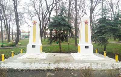 Monument la mormântul ostașilor căzuți în 1944. Parcul eroilor
