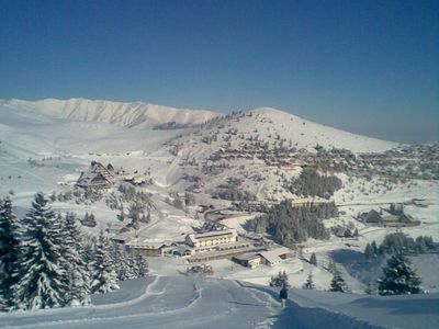 The resort provides access to 30 kilometers of cross-country skiing trails, featuring extensive views of the surrounding Šar Mountains during winter months.