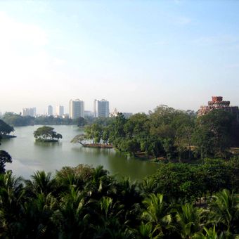 The name derives from Burmese and means "jade lake." Locals use the shores for jogging and walking, treating it as a peaceful escape from city life where families gather especially in the early morning hours.