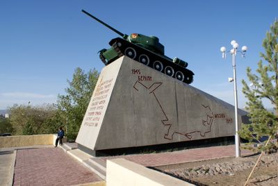 At the hill's base stands a T-34 tank monument, funded by public donations, marking the Mongolia People's Tank Brigade's path from Moscow to Berlin.