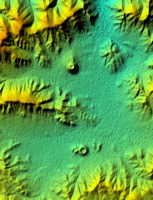 Uran Togoo contains a circular crater with a small lake measuring 20 meters wide and 1.5 meters deep at its center point.