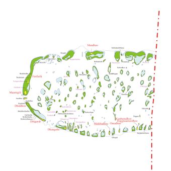 The atoll contains 49 islands scattered across the Indian Ocean, featuring both inhabited local communities and numerous tourist resorts and accommodations.