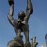 The granite blocks supporting the statue were originally intended for a sculpture of Adolf Hitler in Berlin but were repurposed for this memorial.