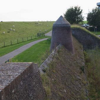 Restanten van de herhaaldelijk vernieuwde zeeversterking t.w. het bastion De Leugenaar en het bastion van de Oranjemolen