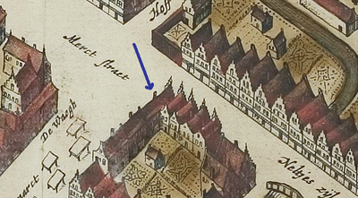 Ruim hoekpand van fijn metselwerk met zware geblokte kroonlijst met timpaan