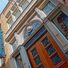 Pand met ingezwenkte halsgevel met houten pui en goede roedenverdeling op de verdiepingen