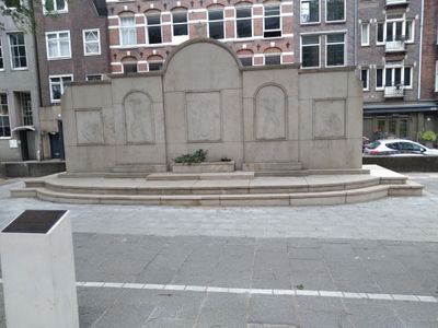 The Monument van Joodse Erkentelijkheid features relief sculptures representing the bonds between Jewish and non-Jewish Dutch citizens during World War II.