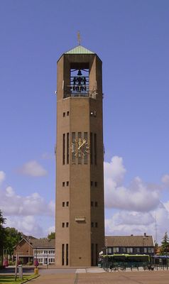 The tower holds multiple functions as a water reservoir, carillon housing, and observation point, while featuring architectural elements of the Delft School.