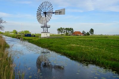 Woning met drie zestienruitsvensters onder schilddak met hoekschoorstenen met borden