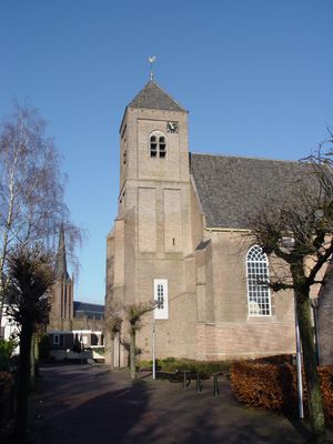 The Plaskerk features a wide nave and narrower choir, with a tower that stands lower than the main building except for its spire.