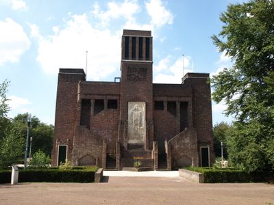 The monument combines Belgian architectural elements with Dutch influences, including sculptures by artists François Gos and Hildo Krop.
