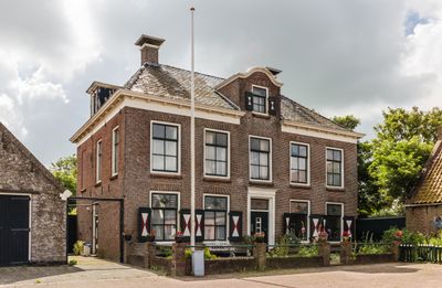 Pand onder zadeldak tegen topgevel met kleine openingen in de top