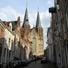 The St Nicholas Church stands with two distinct tower spires, featuring a Romanesque lower structure and Gothic upper sections added during later renovations.