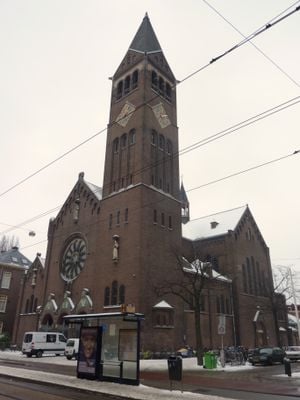 The Boomkerk stands at Admiraal De Ruijterweg 406 in Amsterdam, featuring architectural elements characteristic of early twentieth-century religious buildings in the Netherlands.
