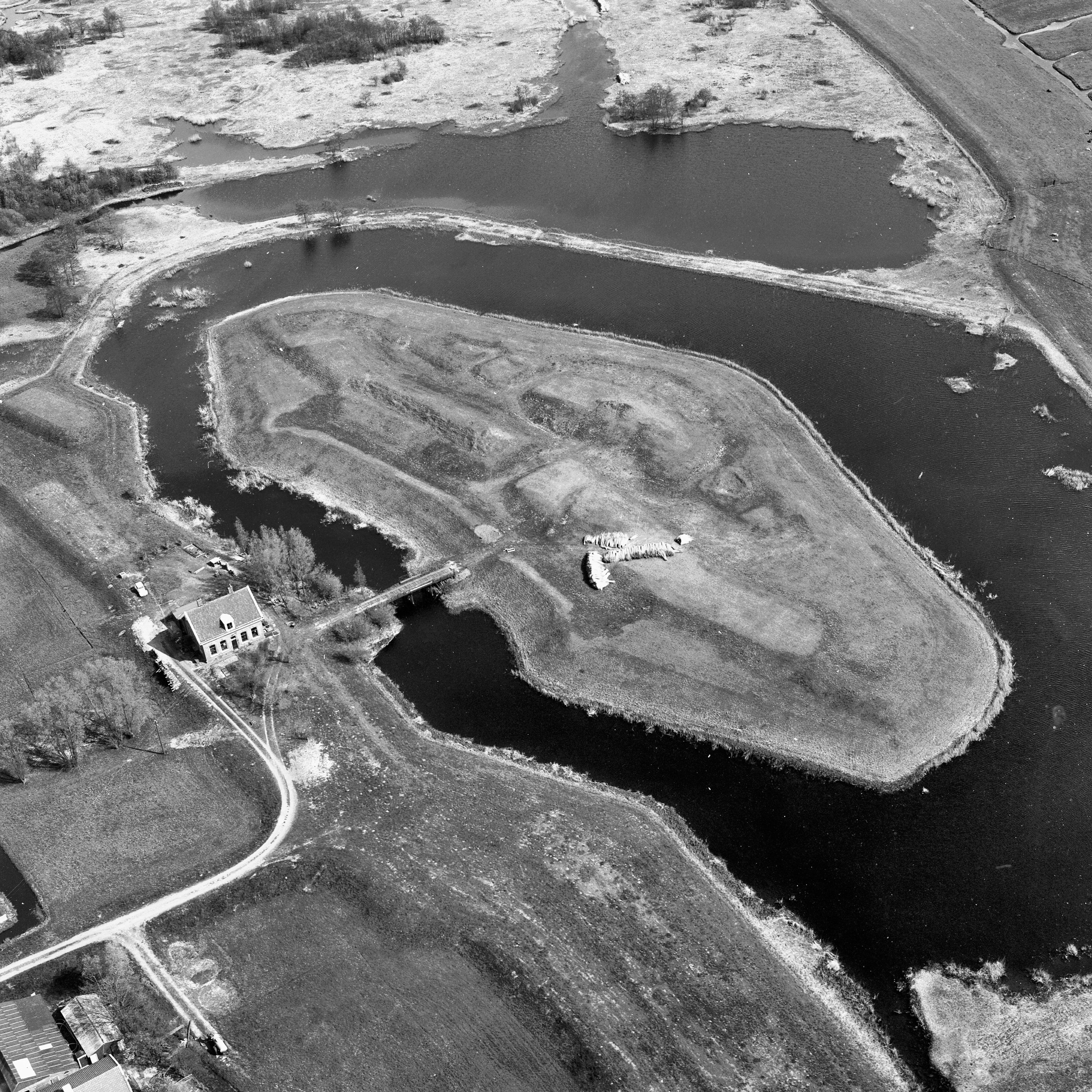 Fort in de Botshol consists of earthen walls and defensive positions constructed on a stabilized sand foundation in the Noorderpolder region.