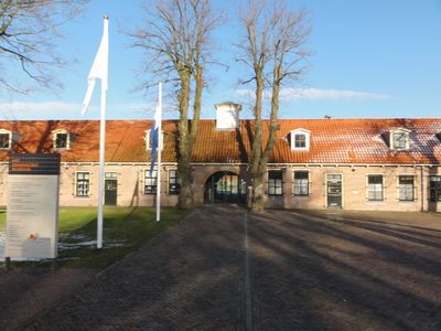 The museum offers rides in an authentic prison transport bus through Veenhuizen, showing the surrounding active prisons and historical detention buildings.