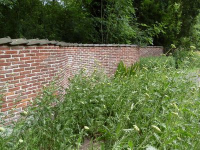 Beeckestijn, slangemuur nabij het linker koetshuis, Rijksmonument op Rijksweg 136