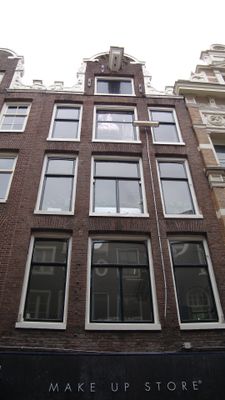 Pand met gevel onder rechte lijst met triglyfen en fronton en een in een leeuwekop eindigende hijsbalk