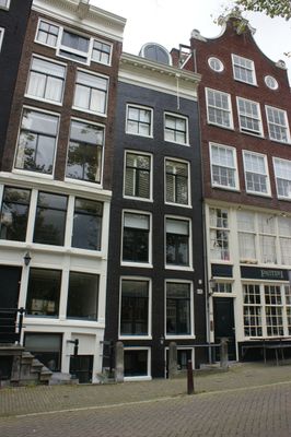 Pand met gevel onder rechte lijst met dakkapel, building in Amsterdam, Netherlands