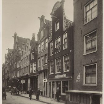 Pand met gevel met gevelsteen en pui, building in Amsterdam, Netherlands