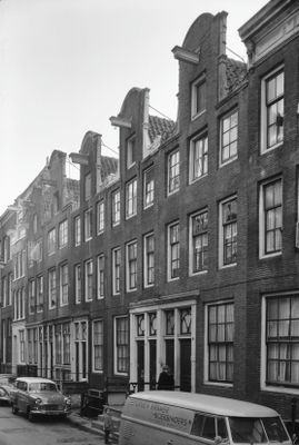 Pand met tot trapeziumgevel verbouwde gevel, in een waarvan nog een deur uit die tijd