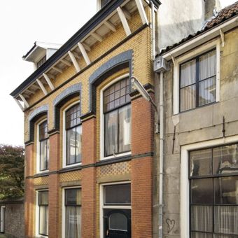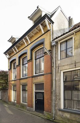 Pand onder voor afgeschuind zadeldak; topschoorsteen en dakkapel op voorschild