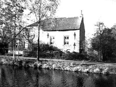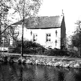 Gedeelte van een boerderij, waarvan de verschillende onderdelen een schilderachtig geheel vormen. Hoge stal onder zadeldak met riet gedekt