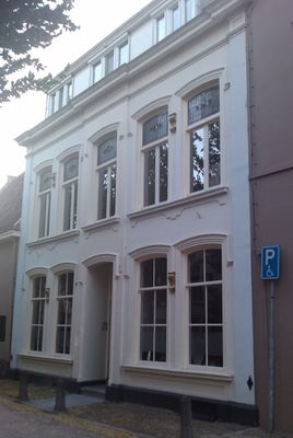 Pand met een op de omstreeks 1860-1870 gebruikelijke wijze gepleisterde lijstgevel van vijf traveeën met middenrisaliet en zijlisenen, building in Deventer, Netherlands