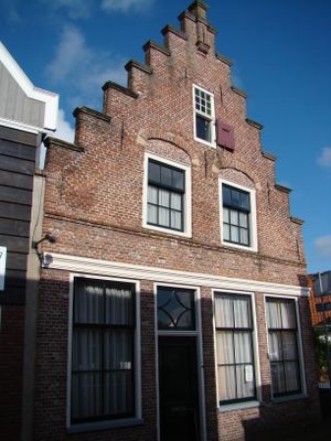 Huis met dwars zadeldak. Oorspronkelijk deur en bovenramen