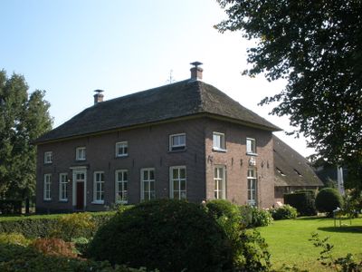 Boerderij onder rieten wolfdak met in de voorgevel jaartalankers