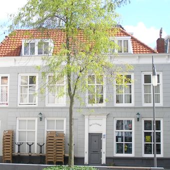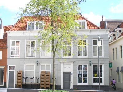 Breed hoekpand met gepleisterde rechte gevel aan de Vlasmarkt. Waarschijnlijk bestaande uit enige in de kern oudere panden, samengevoegd achter een 19e of begin 20e eeuw gevel in traditionele trant, building in Goes, Netherlands
